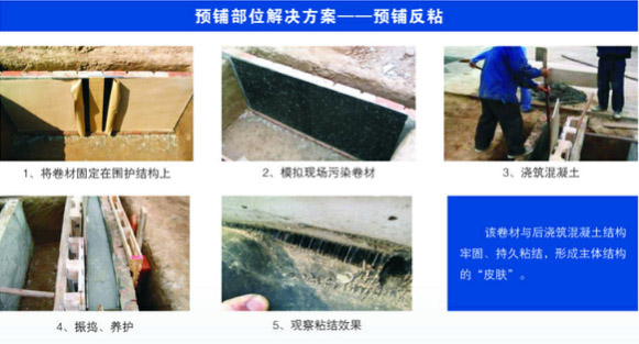 ● 具有普通自粘卷材的特性,能與水泥漿、水泥砂漿(濕鋪)或后澆筑混凝土(預(yù)鋪反粘)結(jié)構(gòu)之間形成連續(xù)牢固的無間隙結(jié)合,可避免防水層和結(jié)構(gòu)層之間“竄水”現(xiàn)象發(fā)生。