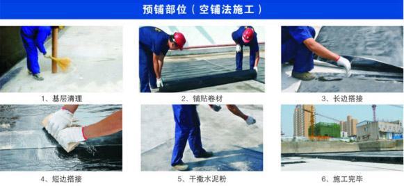 揭除卷材上表面隔離膜,為便于后續(xù)施工,必要時,可在卷材上干撒水泥粉。